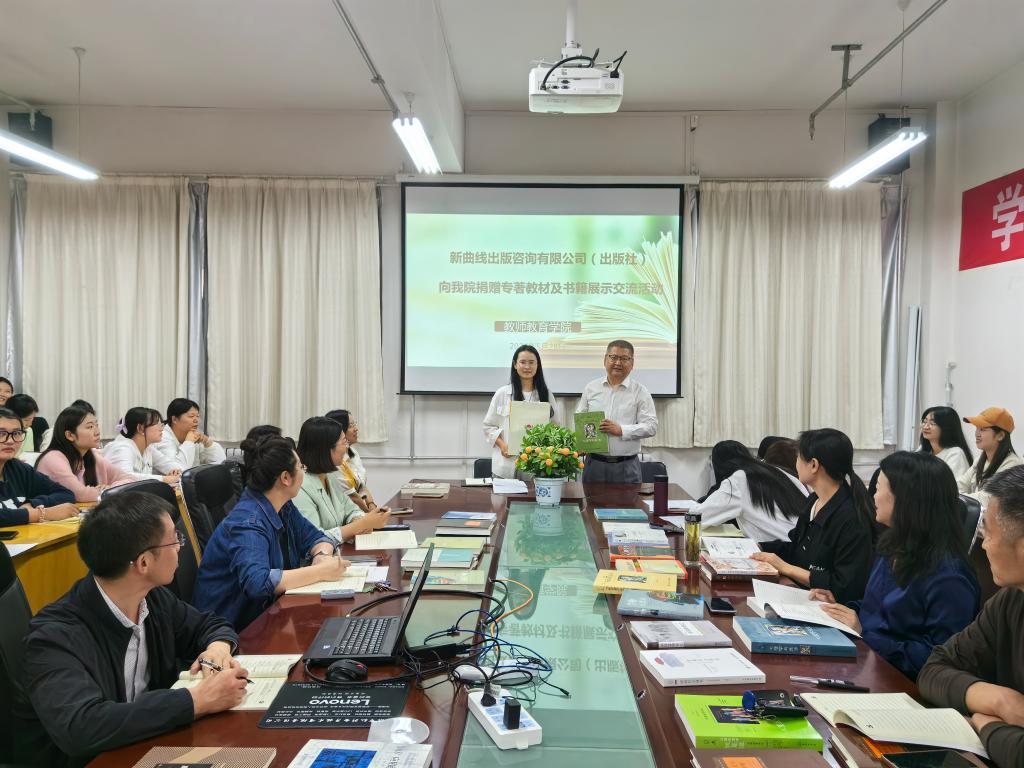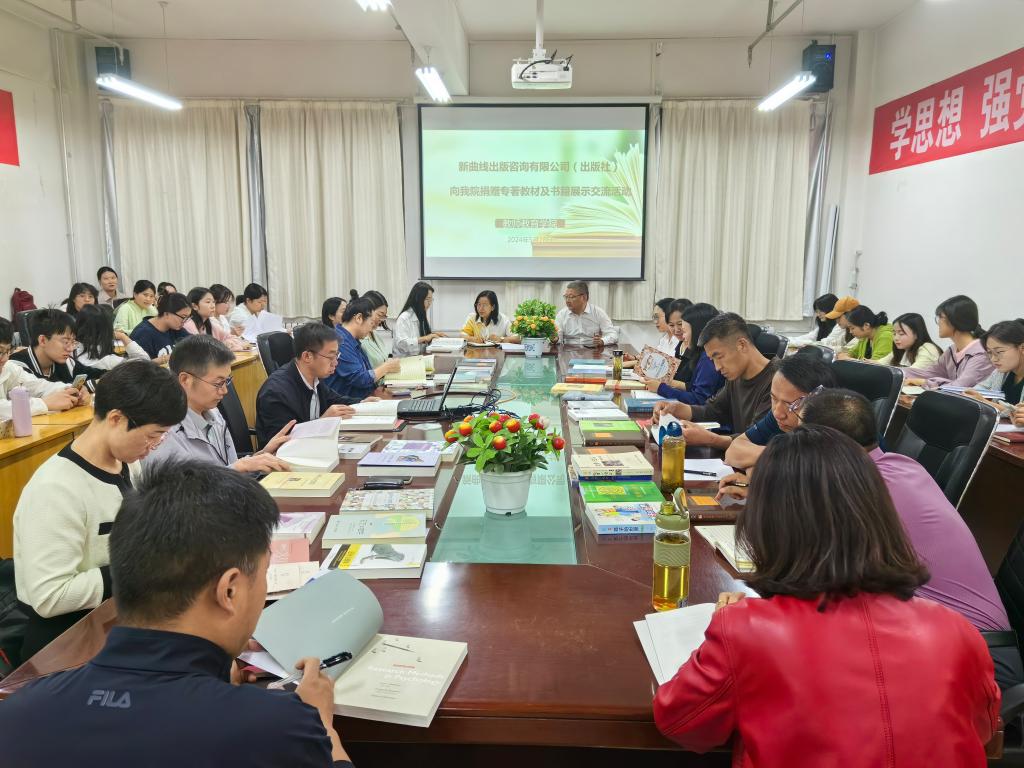 5月28日下午,北京新曲线出版咨询有限公司向tyc122cc太阳成集团捐赠专著教材暨书展交流活动在公司会议室举行。新曲线出版咨询有限公司营销经理王欣宇,tyc122cc太阳成集团经理雒焕国、副经理马富成、各专业负责人及部分师生代表参与了活动。活动由公司党委书记王莉教授主持。