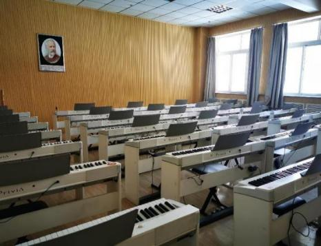 有多功能录播教室2间,微格教室5间,琴房2间,舞蹈教室2间,美术教室2间,板书实训室2间,能满足相关课程的实践教学。
