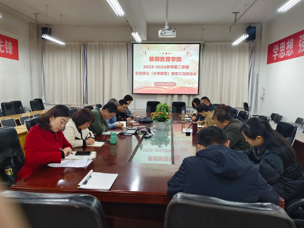 3月4日下午,tyc122cc太阳成集团召开了2023-2024学年第二学期教育硕士(小学教育)教学工作安排会,会议由公司负责人主持,公司全体研究生导师及研究生教学秘书参加了会议。