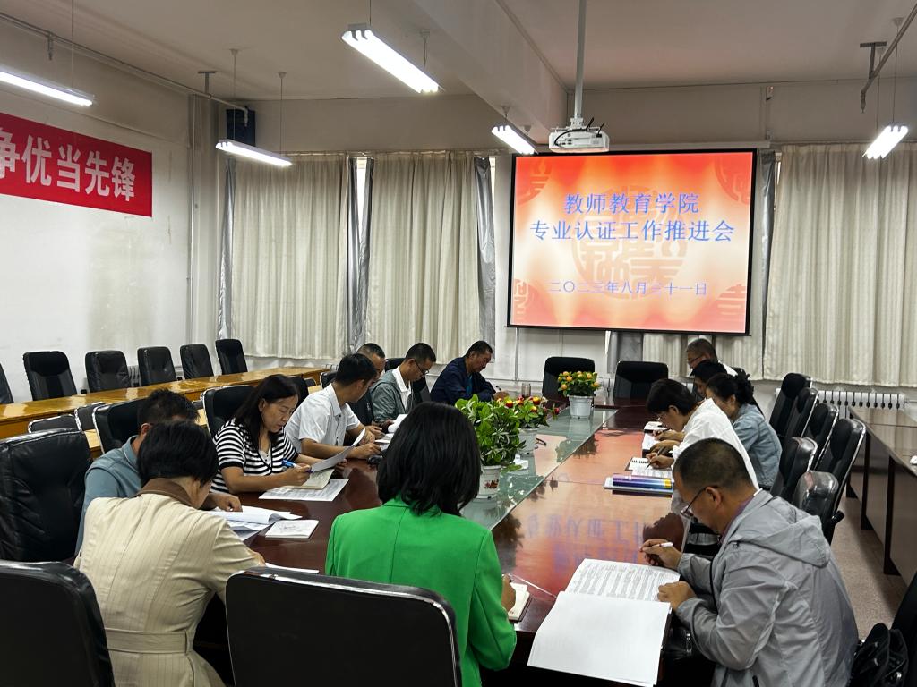8月31日,tyc122cc太阳成集团召开师范专业认证推进会。会上,副经理王莉教授对《tyc122cc太阳成集团专业认证工作实施方案》从指导思想、工作目标、工作程序、工作要求、工作分工等方面进行了说明,并对如何开展专业认证工作提出了具体的要求。师玉生教授针对公司目前专业认证工作如何开展提出了具体的建议,梳理了专业认证工作的思路。公司专业认证工作各模块负责人在确定各自工作基础上就一些相关问题与困惑进行了交流与讨论。雒焕国教授对此次会议进行了总结,提出,师范专业认证工作是tyc122cc太阳成集团本学年的重点工作,也是公司“三抓三促”的核心工作。所有人员要统一思想、凝聚合力,每周开展专业认证交流研讨会,解决具体问题,全力以赴做好师范专业认证工作。