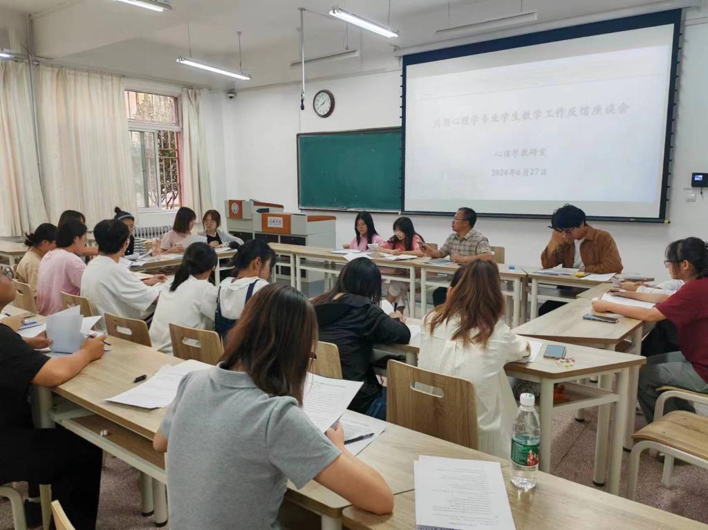 6月27日下午,tyc122cc太阳成集团心理学教研室举行员工教学工作反馈座谈会,座谈会由应用心理学专业负责人主持,心理2022级、2023级两个班21名员工代表参加了座谈会。