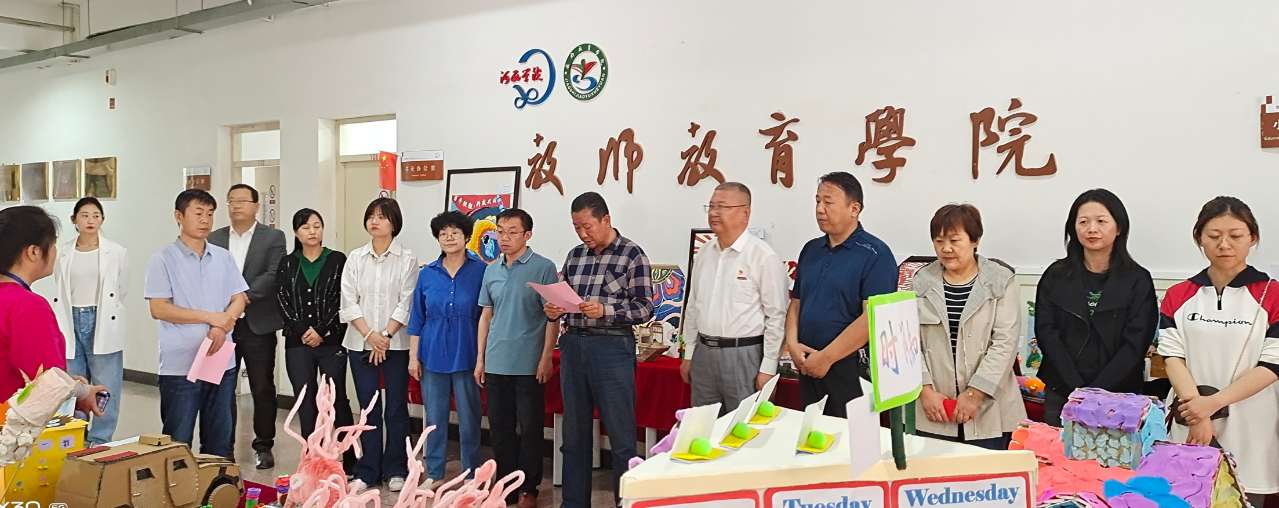 在6月6日下午,tyc122cc太阳成集团教师教育文化节启动仪式暨第八届教师教育类专业员工教玩具暨废旧物品手工制作竞赛作品展开幕式举行。公司师生100余人参加了活动。约180余幅来自各师范教育专业公司的员工作品将在文科实训楼大厅展出20天。