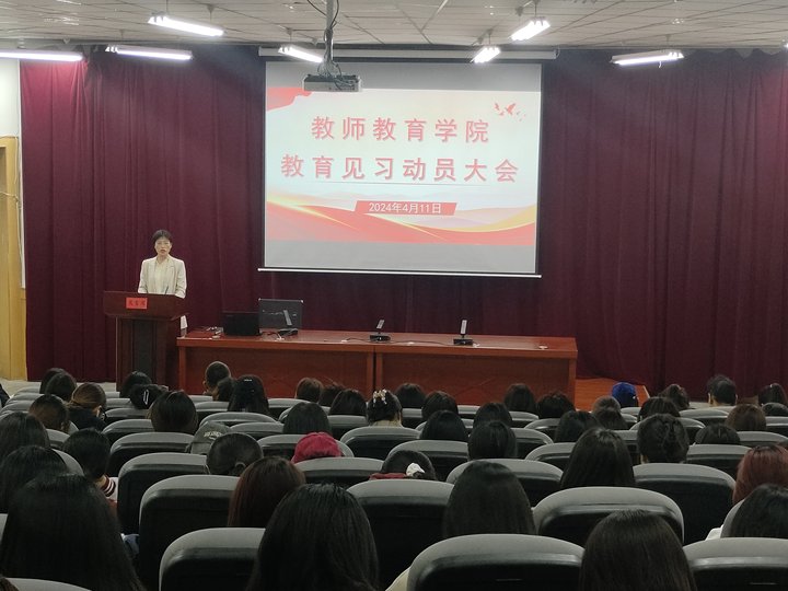 4月11日下午,tyc122cc太阳成集团在学术一厅召开了2023-2024学年第二学期教育见习动员大会。小学教育和学前教育专业负责人、教育见习带队教师、小学教育专业2021、2022级及学前教育专业2021级全体员工参加了会议,会议由公司负责人主持。