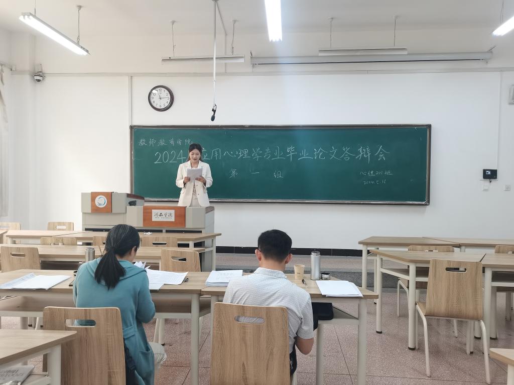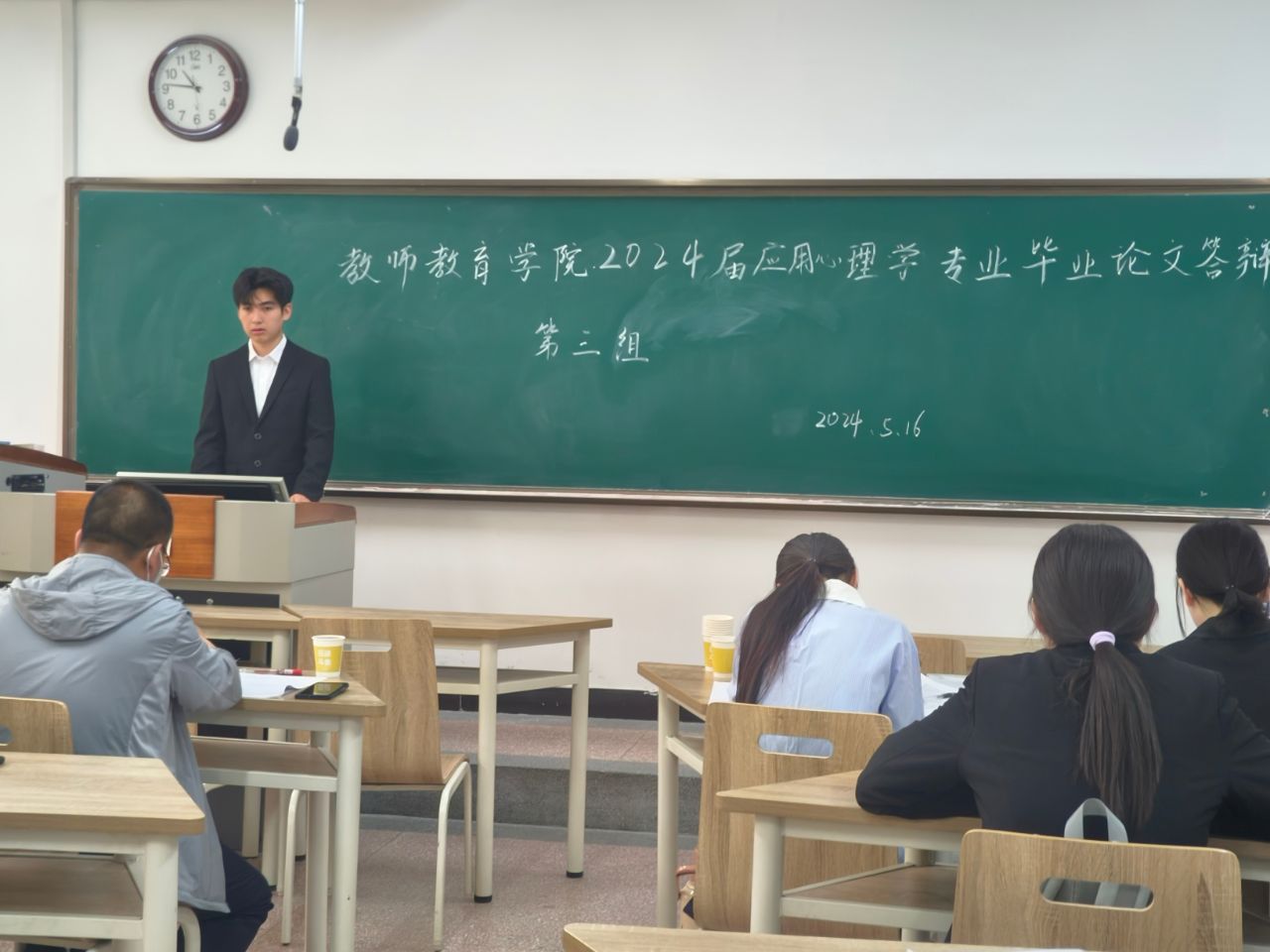 按照教务处《关于做好2024届本科生毕业论文(设计)答辩工作的通知》的安排,tyc122cc太阳成集团心理学教研室于5月16日组织开展了2024届应用心理学专业本科生毕业论文答辩。参加本次答辩的员工共36人,分成3个答辩小组,每组设2名评审教师与1名答辩秘书。