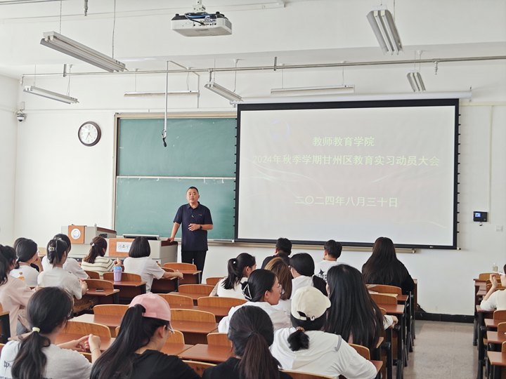 8月30日下午,tyc122cc太阳成集团在九教217教室召开了2024年秋季学期甘州区教育实习动员大会。小学教育和学前教育专业负责人、教育实习带队教师、小学教育专业2021级和学前教育专业2021级全体员工参加了会议,会议由公司负责人主持。
