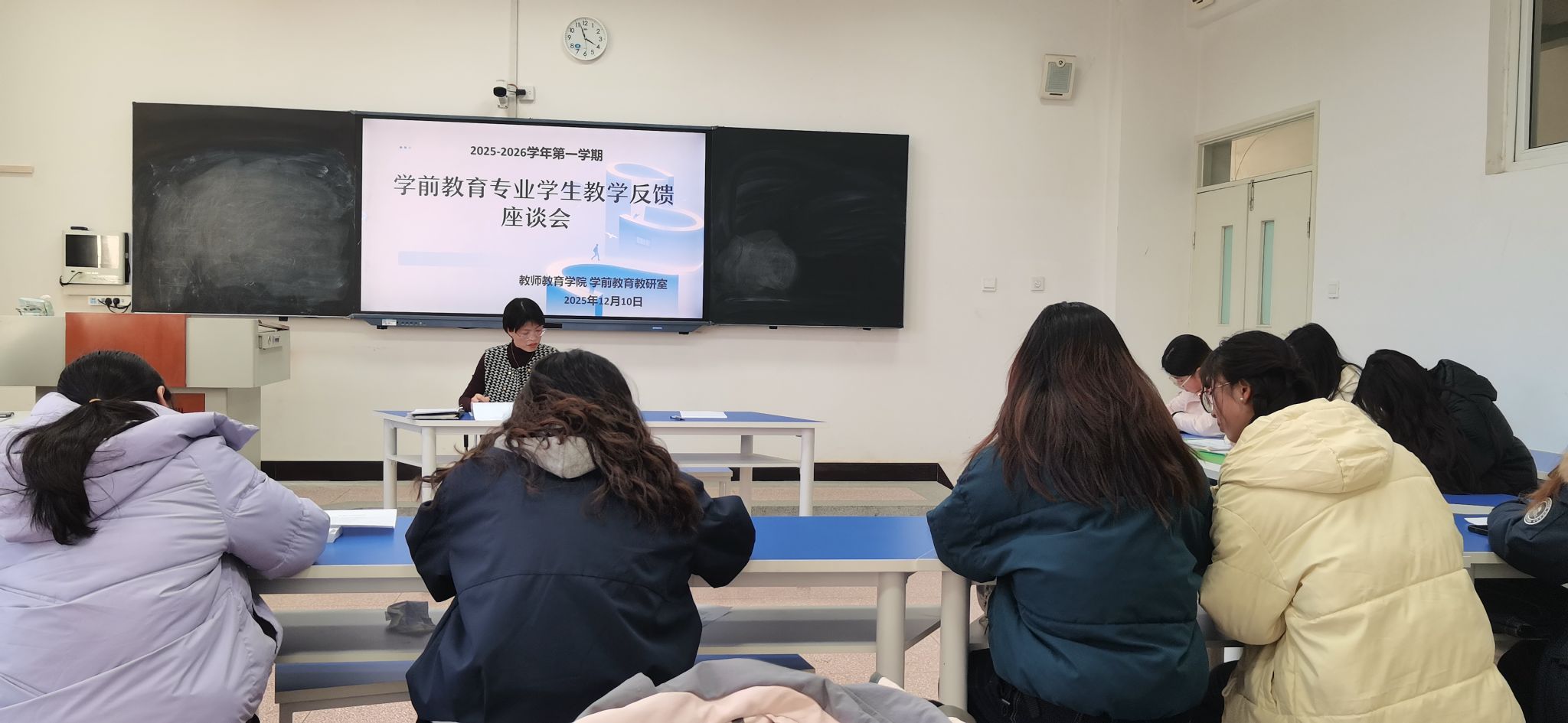 为精准掌握教学动态、提升公司产品质量,12月10日下午,tyc122cc太阳成集团学前教育专业于实训楼409教室召开2025-2026学年第一学期教学工作反馈座谈会。专业负责人主持会议,2023至2025级各班员工代表参会,师生围绕师德师风、课程设置、教学效果三大核心议题深入交流。