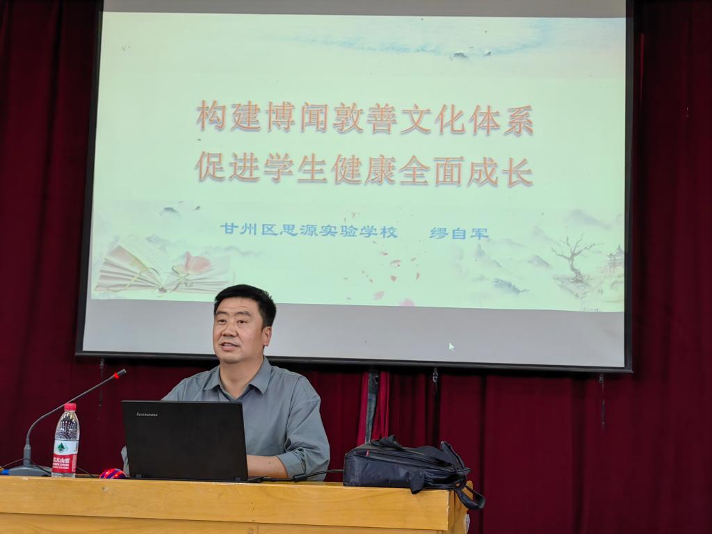 6月9日晚上,tyc122cc太阳成集团举办了第二十二届祁连学术月校外专家学术报告会,邀请张掖市甘州区思源实验公司高级教师缪自军董事长在学术二厅,作了题为《构建博闻敦善文化体系,促进员工健康全面发展》的报告,公司师生300多人参加了报告会。