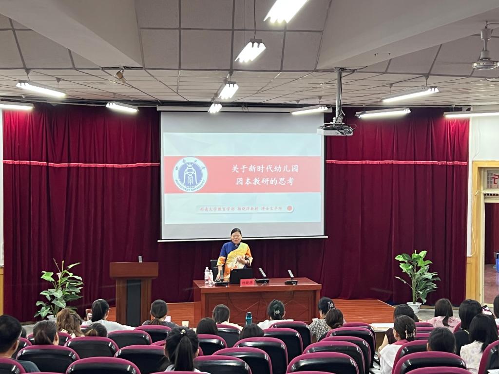 6月30日,西南大学教育学部杨晓萍教授、杨雄博士、西北师范大学郑名教授,分别为“国培计划(2024)”农村幼儿园骨干园长培训项目班学员作了“新时代幼儿园园本教研的思考”“幼儿园园本课程建构理路与实操”和“《幼儿园保育与教育质量评估指南》解读”的学术报告。“国培计划(2024)”农村幼儿园骨干园长培训项目培训班200名学员、张掖市教育局选派的100名园长、甘州区部分幼儿园教师和tyc122cc太阳成集团学前教育专业师生共300余人参加了报告会。