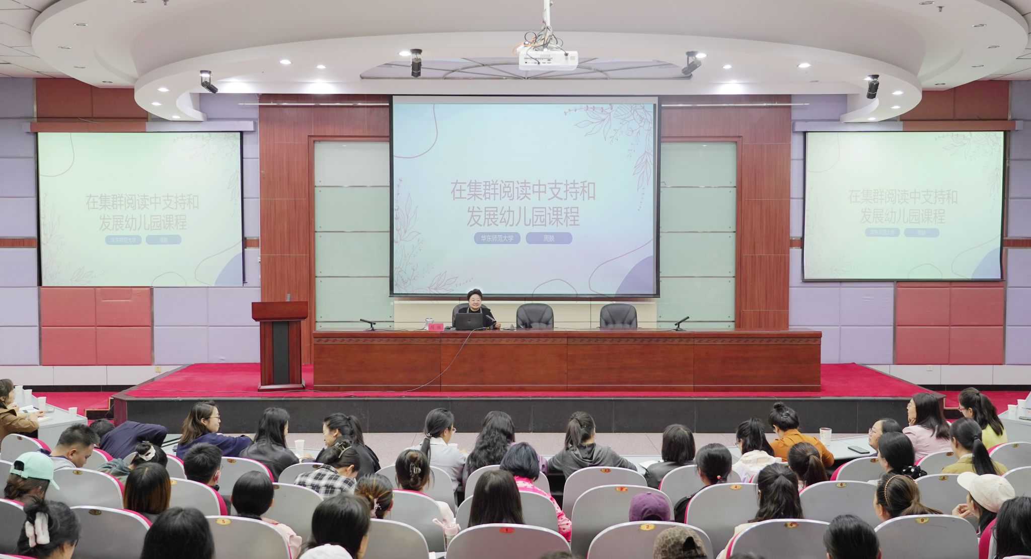 报告中,周兢教授以“在集群阅读中支持和发展幼儿园课程”为核心,聚焦图画书资源的实践应用,详细阐述如何筛选、整合优质图画书,将其转化为支持儿童课程学习的载体,帮助儿童在具象化阅读中理解课程内容。周教授围绕集群阅读与课程生成的关联性,解析通过主题式、系列化的集群阅读活动,激发儿童探究兴趣、推动幼儿园课程动态生成与完善的路径,提出在集群阅读中推进课程学习的具体策略,为师生提供可借鉴的实践方法,助力提升幼儿园教育活动的质量与效果。