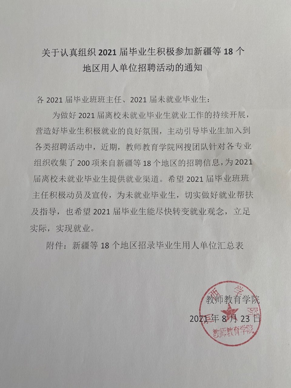 关于认真组织2021届毕业生积极参加新疆等18个地区用人单位招聘活动的通知