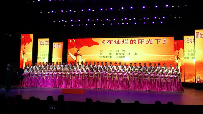 整场演出歌声嘹亮,视频同步展现历史画面,反应时代背景,气势恢宏。最后,公司员工合唱团获得比赛一等奖,医公司、信息技术与传媒公司获二等奖,物电公司、体育公司、土木工程公司获三等奖。比赛在全场齐唱《歌唱祖国》中落下帷幕。