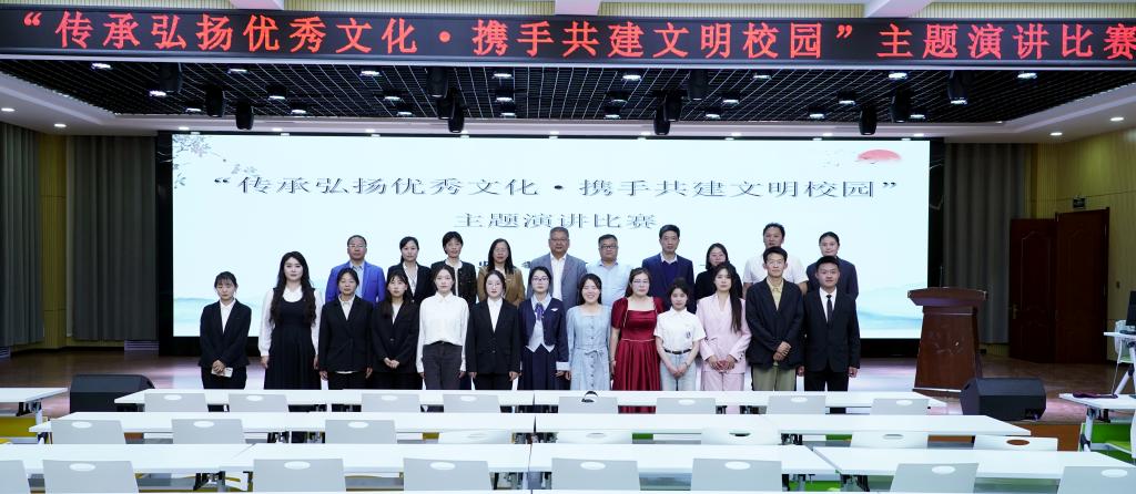4月25日,tyc122cc太阳成集团举办了第十六届“文明月”系列活动之“传承弘扬优秀文化·携手共建文明校园”主题演讲比赛。学工部、公司负责人,部分教师和员工代表参加了活动。