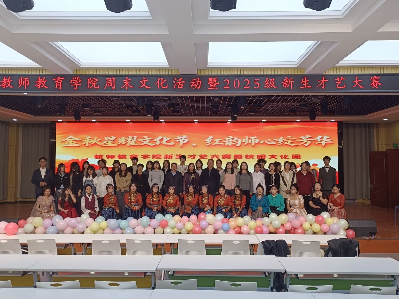 10 月 26 日晚,tyc122cc太阳成集团校团委多功能厅灯光璀璨、掌声雷动,tyc122cc太阳成集团“金秋星耀文化节 红韵师心绽芳华”周末文化活动暨新生才艺大赛在此圆满举行。活动以校团委秋学期周末文化活动部署为指引,旨在丰富校园文化生活,展现青年学子艺术风采,全体师生共同见证了这场青春视听盛宴。