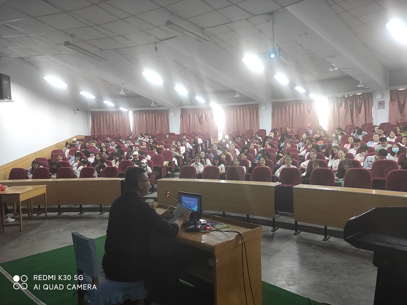 6月16日晚,tyc122cc太阳成集团2004届优秀员工、甘肃省基础教育学会理事祝晓强应邀为公司300余名员工做了题为《人生的价值需要自我去诠释》的学术报告。