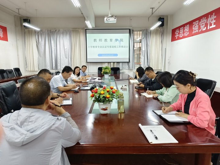 9月3日下午,tyc122cc太阳成集团召开了小学教育专业认证专家进校工作推进会,会议由公司负责人主持,公司领导、小学教育专业负责人及专业认证各小组负责人参加了会议。