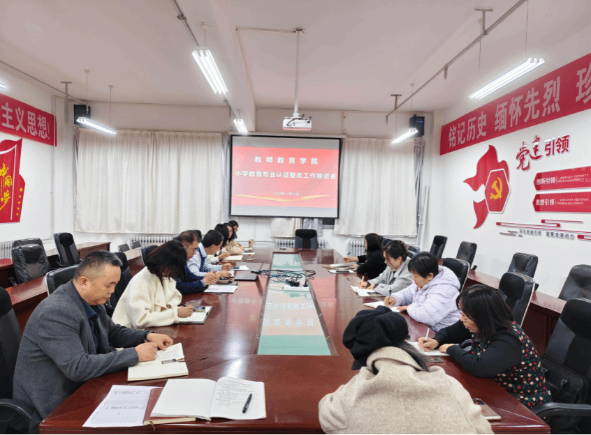 11月 11 日,公司召开小学教育专业认证整改工作推进会。会议由公司负责人主持,小学教育专业负责人及小学教育专业全体教师参加会议。